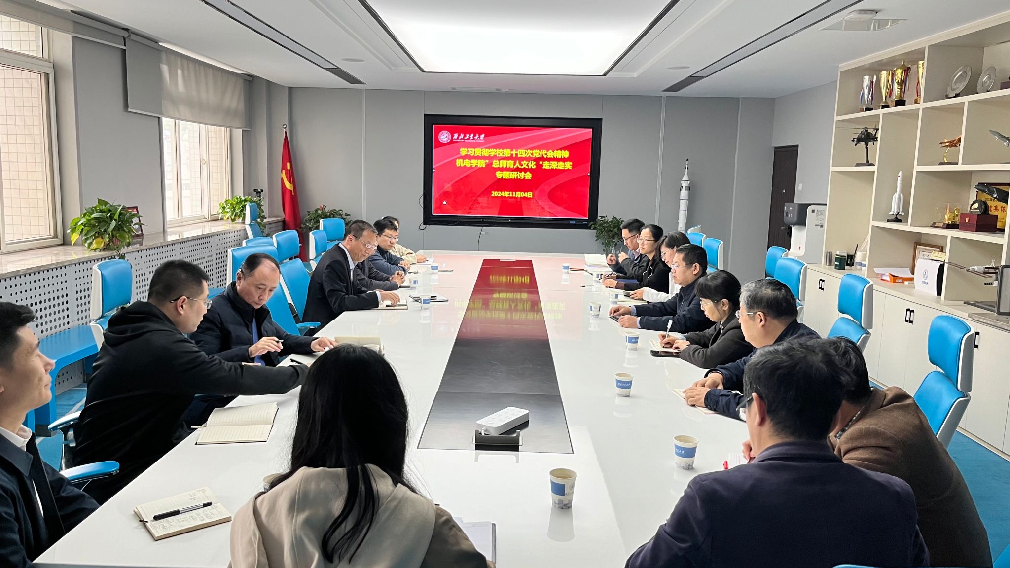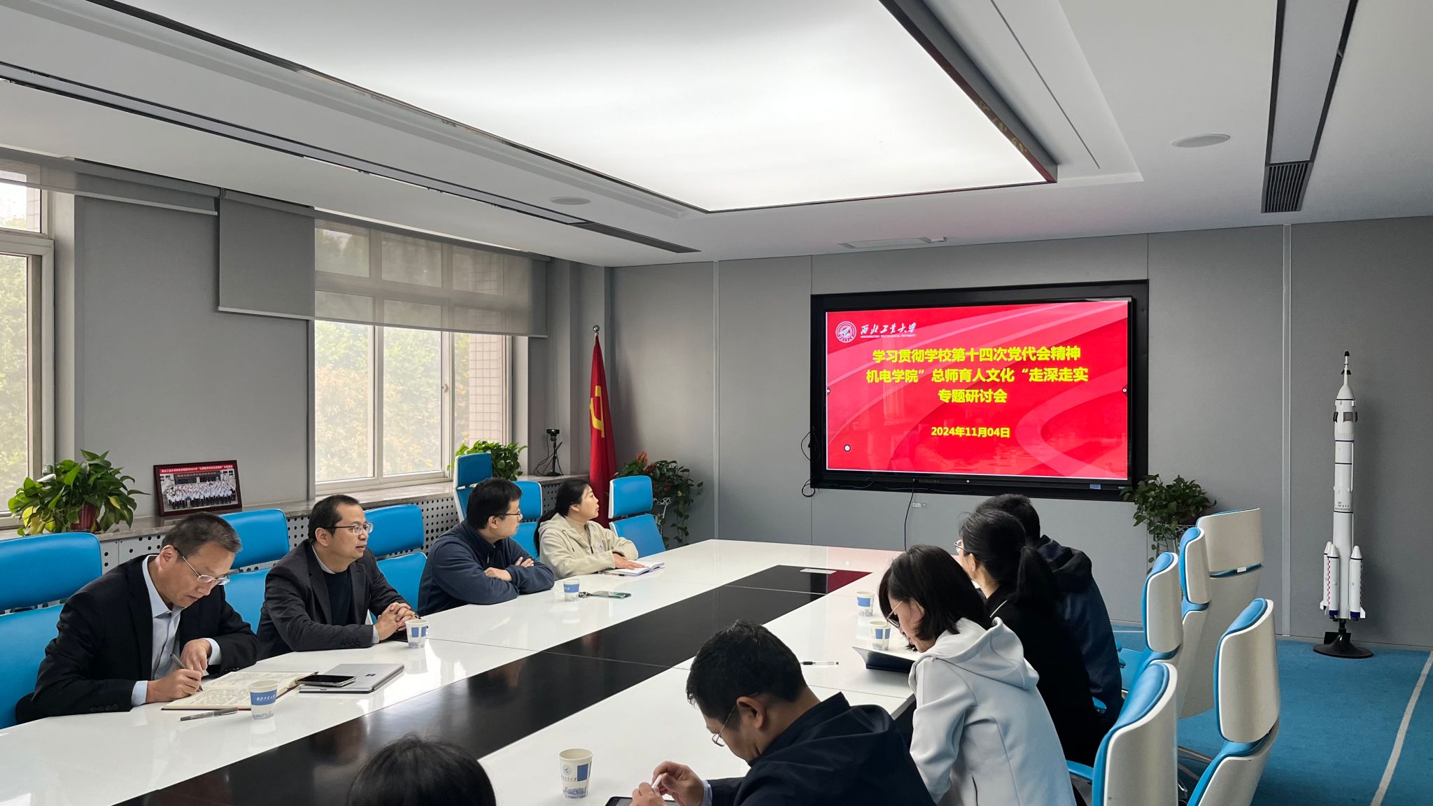 张映锋书记传达了学校十四次党代会精神,结合学院打造“中国飞行器总制造师的摇篮”这一育人品牌,就落实总制造师育人文化提出三点要求:第一,以课程思政为抓手,通过总制造师事迹激励学生以此为榜样。今年学院课程思政中心出版了《培德铸魂 机电启航》的智能制造人才培养课程思政教材,精选了各专业课程思政的优秀素材,希望各系将其运用到日常教学中去。第二,在培养环节上,通过联合本科毕业设计、学研一体化等方式,加强科研反哺教学,把学生从工程师培养为总师型人才。第三,以教材为着力点,利用学科优势出版一批好教材,践行“总师育人文化”。