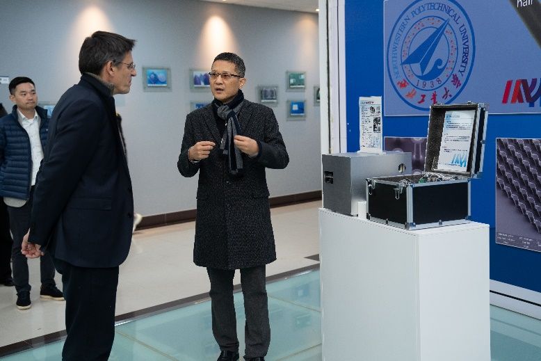 奎洛兹教授一行参观了天都-西北工业大学深空探测联合实验室、空天微纳系统教育部重点实验室。常洪龙教授为奎洛兹教授介绍了实验室近年来在深空探测领域的工作进展,包括用于火星生命探测的液相色谱仪、乘员健康保障的流式细胞仪、用于火星环境感知的微机械惯性和电场传感器、用于地外探测器着陆保障的偏振光光谱成像系统,以及用于空天飞行器减阻防冰的灵巧蒙皮等。奎洛兹教授对实验室取得的成就表示高度赞赏。