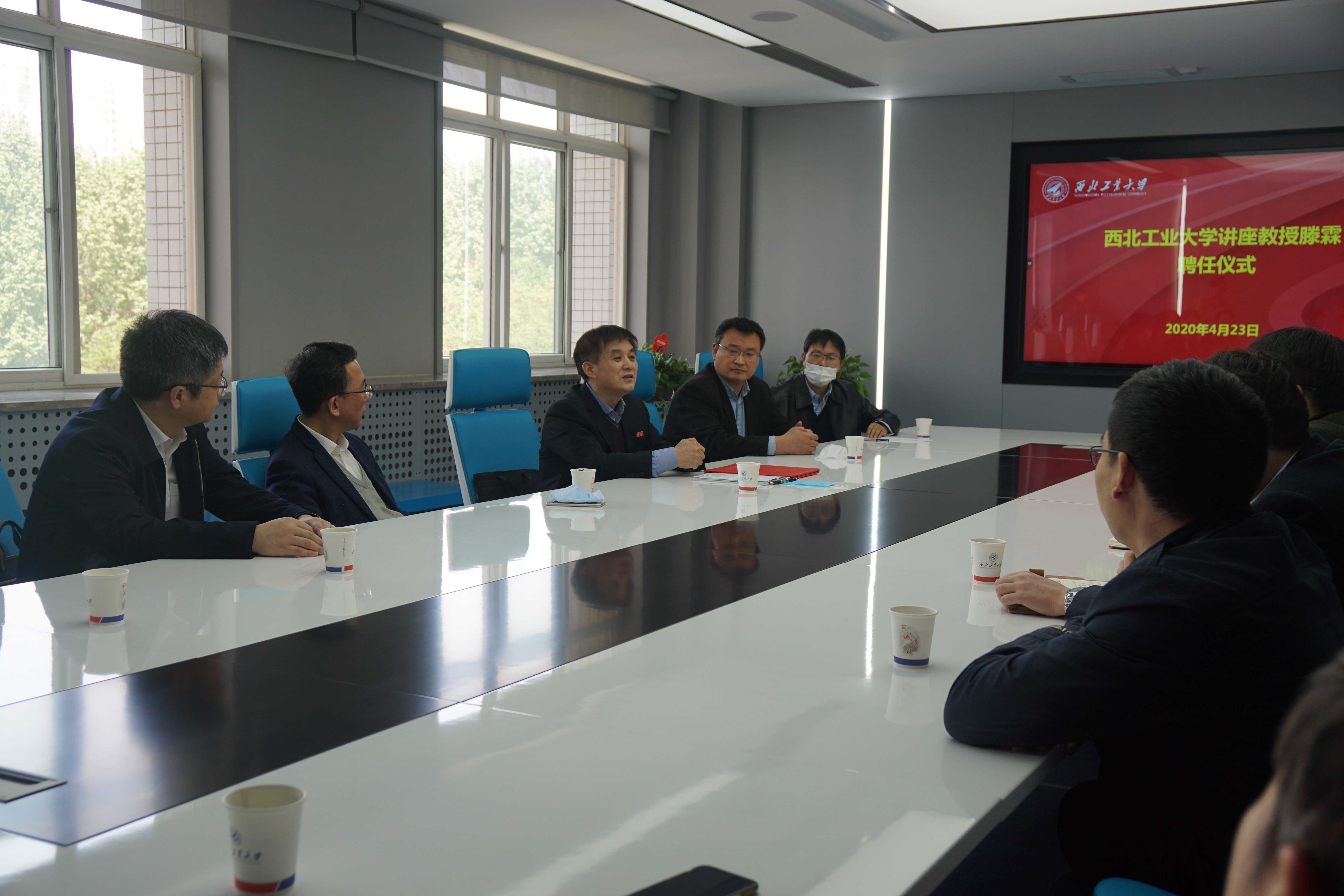 B416会议室,西北工业大学知名校友、中国航空工业618研究所党委书记兼副所长滕霖受聘为我校讲座教授。副校长张卫红、校长助理王宇波、科研院院长马炳和、高层次人才办公室副主任兼人事处副处长李恒、成人直播