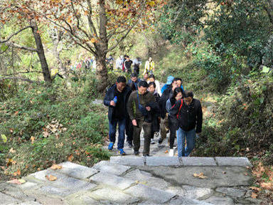 全体教职工早早的到达翠华山,欣赏到了翠华山的深秋早间美景。深秋清晨的翠华山,山间薄雾缥缈、溪流潺潺、红叶漫山,红日隐隐现现,山风阵阵、激起飞鸟凌空,雾散山清,美不胜收。