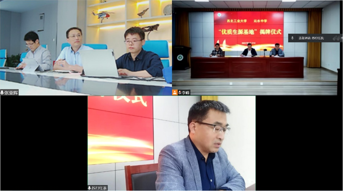 院长助理张亚辉、沁水中学党总支书记、校长李广世、副校长豆张杰、教导处主任苏建梅共同参加了线上签约仪式。