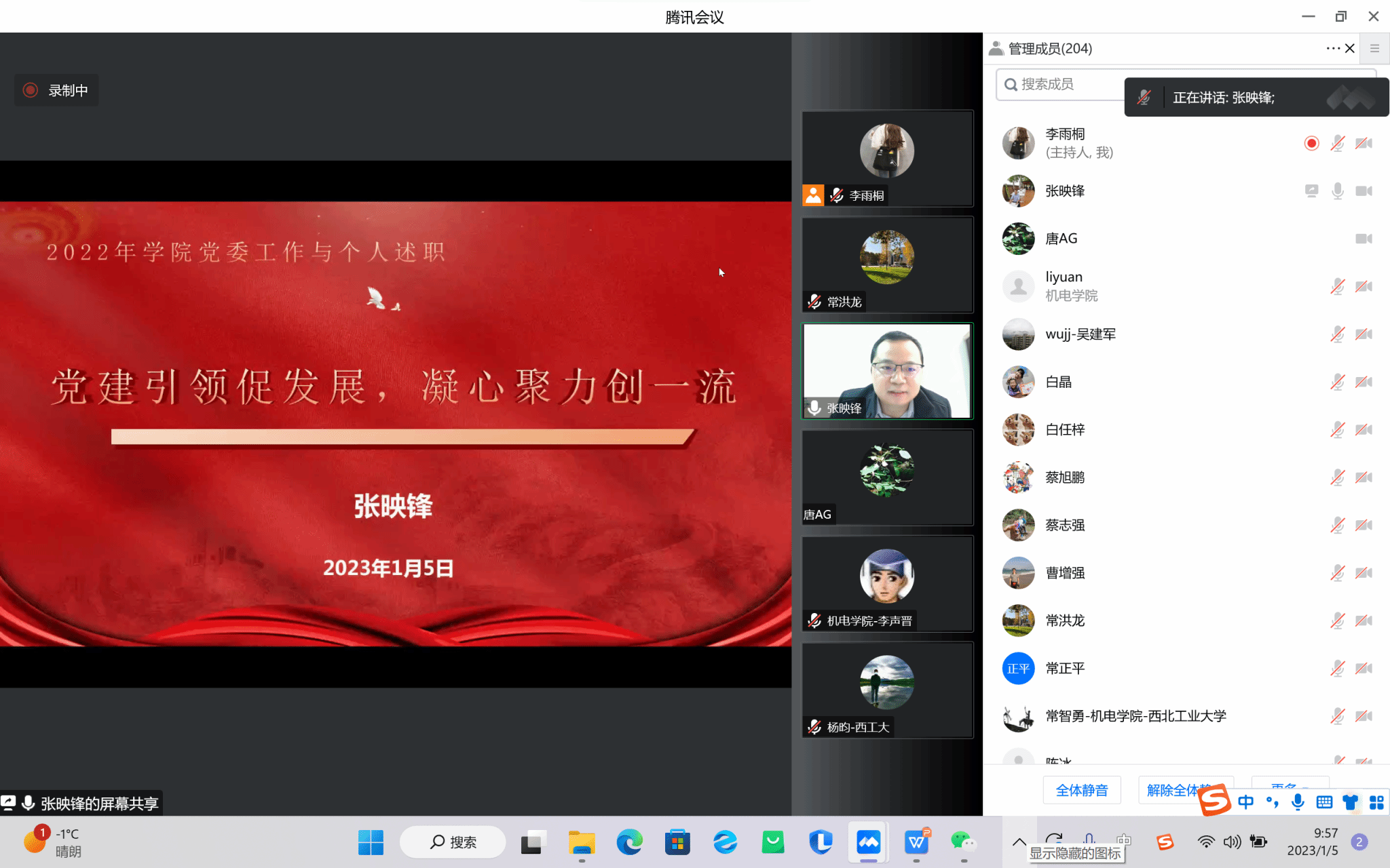 于1月5日召开了线上2022年度五、六级领导人员述职测评大会,院领导、全体教职工等参加了会议,会议由党委书记张映锋主持。