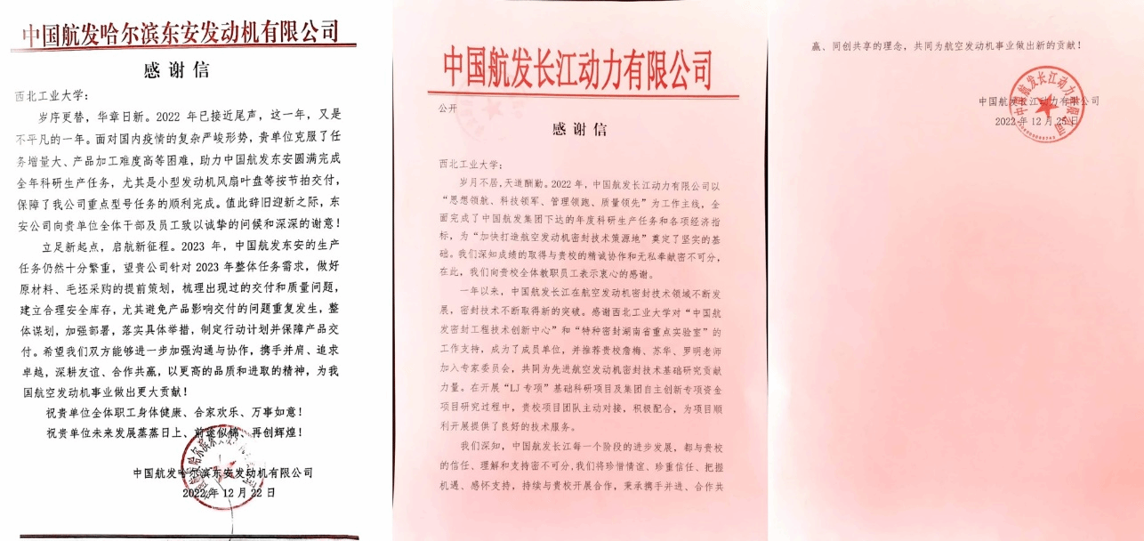 近日,中国航发哈尔滨东安发动机有限公司和中国航发长江动力有限公司分别给学校发来感谢信。在国内疫情的复杂严峻形势下,成人直播