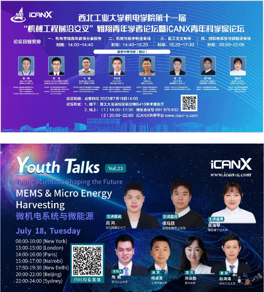 第十一届“机械工程前沿交叉”翱翔青年学者论坛暨iCANX青年科学家论坛采取线上、线下相结合形式隆重举办。本届论坛以多元学术专场为特色,激发学术创新,包括学院青年教师分享报告、机械与航宇制造专场、医工交叉专场、微机电系统与微能源专场。来自南洋理工大学、新加坡国立大学、英国贝尔法斯特女王大学、英国诺丁汉大学、英国帝国理工学院、法国里昂大学国立应用科学学院等海内外知名高校15位青年学者参加本届论坛汇报及交流。成人直播