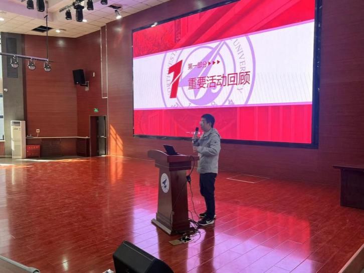 之后,由宗立军进行学期重要活动回顾及微积分期中考试成绩总结。他首先带着同学们回顾了2023级本科新生家长见面会、友谊校区实验室参观、趣味运动会等前半学期的大型活动。接着,他为同学们带来了成人直播