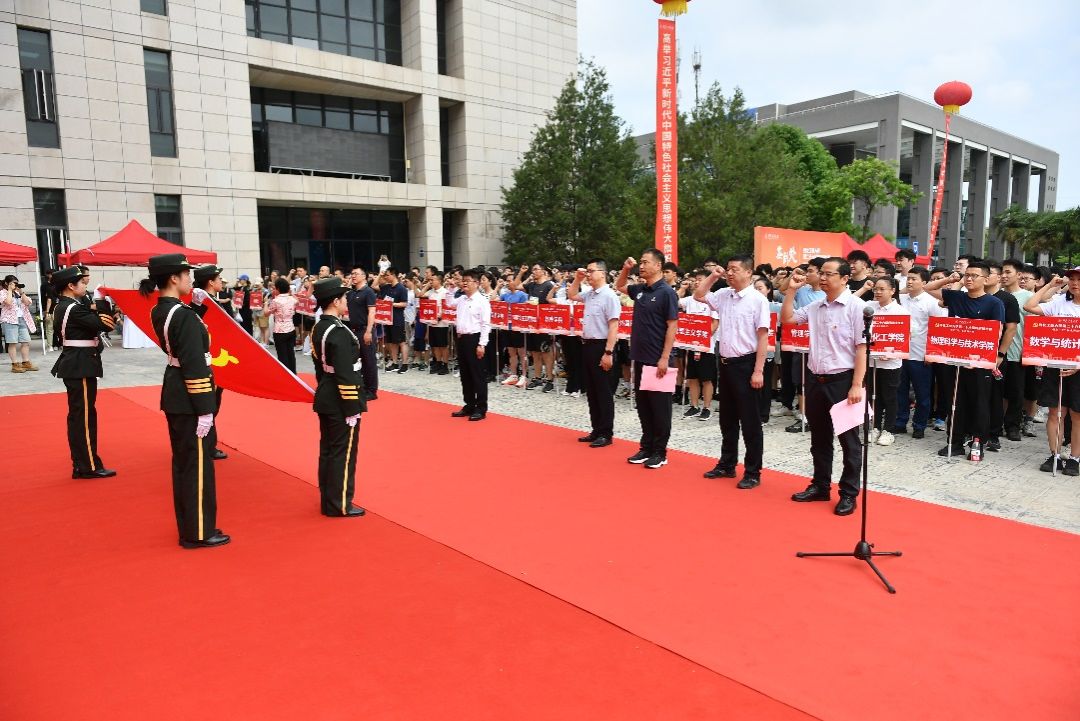 开幕式在嘹亮的国歌声中拉开帷幕。李彩香带领参赛党员面向鲜红的党旗,重温入党誓词,彰显了西工大人永远听党话、跟党走的坚定意志。