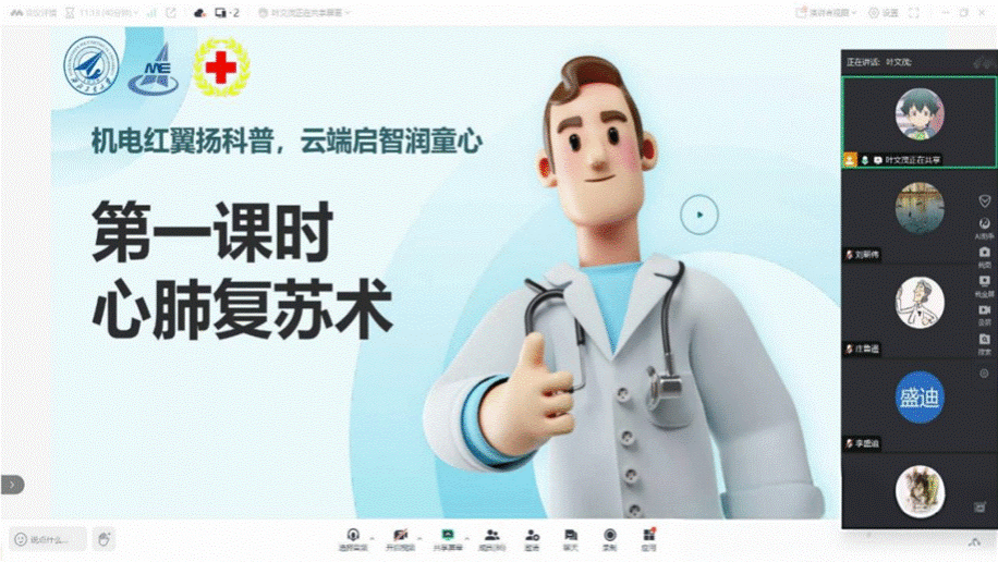 学院“机电红翼扬科普,云端启智润童心”实践队依托校团委“一起云支教”平台,为陕西、广西、云南、宁夏等地的200余名中小学生开设“生命护航”云课堂,传递红十字会“人道、博爱、奉献”精神。