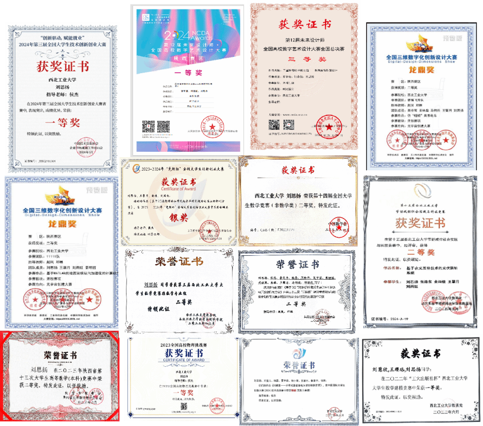 张卫红院士团队继续深造。本科期间以第一作者身份发表EI会议论文1篇,发表专利3项、软著4项;获得全国数学竞赛等省部级及以上竞赛获奖21项;获得苏州育才奖学金、国家奖学金、校级特等奖学金等;获评西北工业大学学业先进个人、文艺先进个人、优秀大学生标兵等称号。
