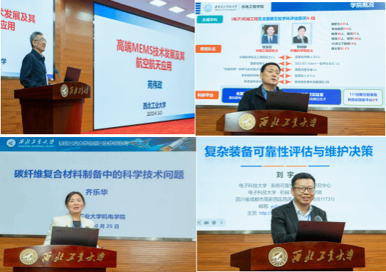 会议还特邀四位专家学者作大会学术报告。西北工业大学苑伟政教授、西安电子科技大学訾斌教授、西北工业大学齐乐华教授和电子科技大学刘宇教授分别就高端MEMS技术发展及其航空航天应用、智能喷涂机器人关键技术发展与挑战、碳纤维复合材料制备中的科学技术问题、复杂装备可靠性评估与维护决策等作主旨报告。